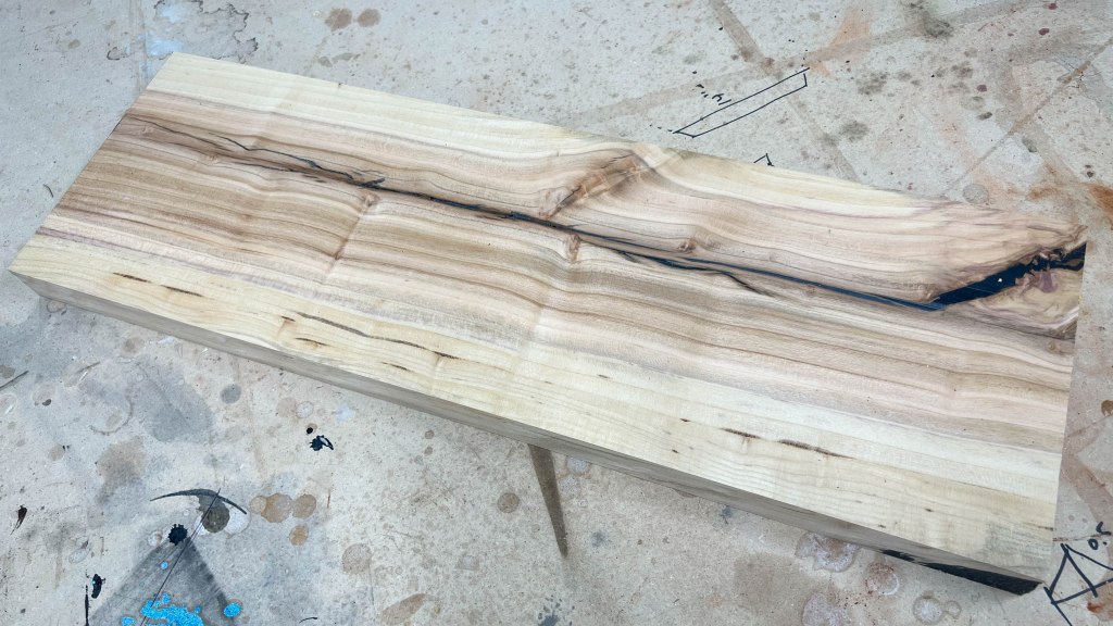 About 7 years ago, a friend cut a plum tree and gave me a piece of the trunk. This wood is beautiful with colors from yellow to red and purple, and some really nice crotch figure. I milled it, dried it for a couple of years, and made a couple of things with it, like a small box and whatnot. I still had a slab lying around, and I figured I’d make another box with it. Unfortunately, when I filled the cracks with epoxy, I had an inexplicable brain fart and poured half the amount of hardener. As a result, the epoxy in the cracks is too soft to look good. So, I decided to make a frame with it instead: